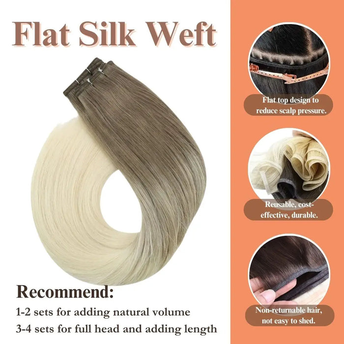 Flat Silk Weft Hair Extensions 100% Virgin Human Hair Balayage Blonde #BA8/60