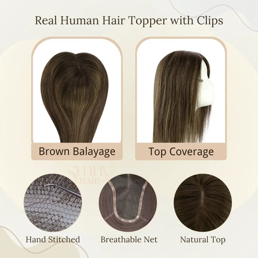 Light Brown Balayage Virgin Human Hair Topper for Thinning Hair #8C/60
