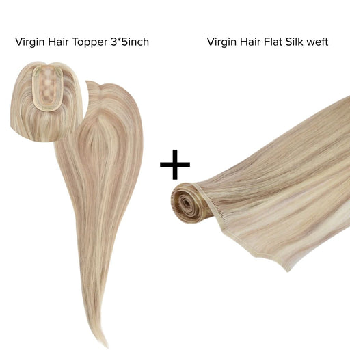 [Bundle] Virgin Hair Topper3*5inch #P18/613 + Flat Silk Weft #P18/613