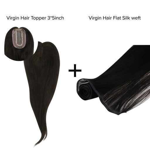 [Bundle] Virgin Hair Topper3*5inch #1B + Flat Silk Weft Natural Black #1B