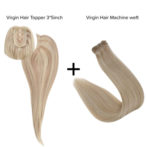 [Bundle] Virgin Hair Topper3*5inch #P18/613 + Machine Weft #P18/613