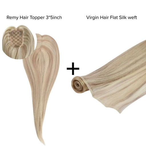 [Bundle] Remy Hair Topper3*5inch #P18/613 +Virgin Hair Flat Silk Weft #P18/613