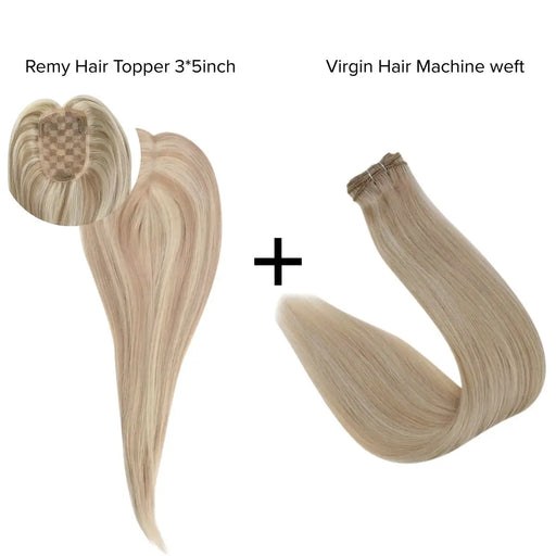 [Bundle] Remy Hair Topper3*5inch #P18/613 + Virgin Hair Machine Weft #P18/613